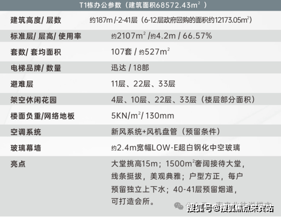 一般市场甲级写字楼层高10米左右,面积不足1000㎡,本项目T1栋约187米云端国际办公写字楼,商务大堂独具约15米挑高中空、约1500㎡奢阔商务大堂,匹配世界级办公体系。