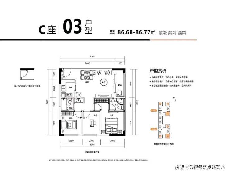 C03户型--约86㎡全能大三房 南北通透 全明格局