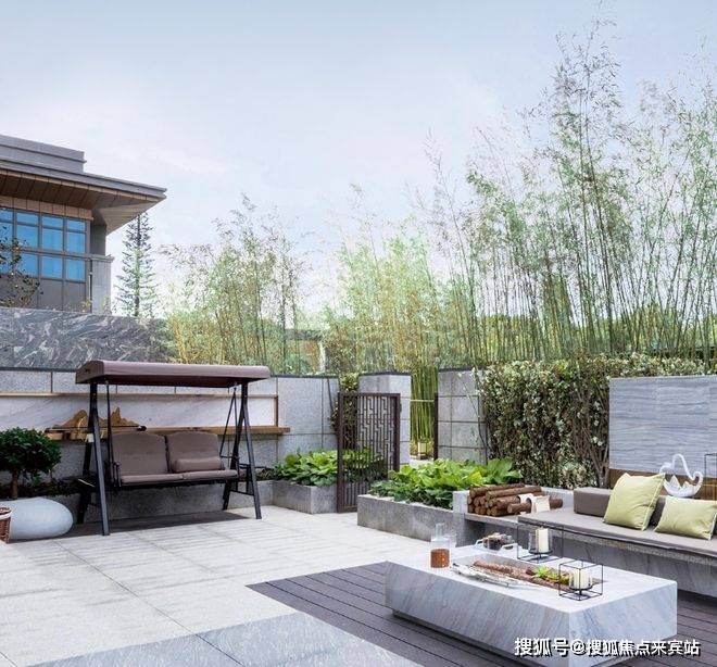 顶层开放式瞰景露台,远可望山峦叠翠,近可揽园林四季。于此莳花弄草,便是太太的养心花园;摆上茶案,亦可作先生指点江山的露天茶室。