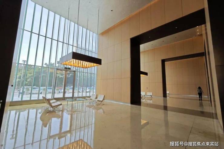 双大堂设计为商务接待增色。首层大堂挑高约10米,面积1800平方米;空中大堂层高6米,视野开阔,每次接待都成为难忘体验,焕新企业形象。