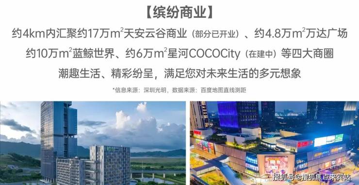 • 【缤纷商业】:约4km内汇聚约17万㎡天安云谷商业(部分已开业)、约4.8万㎡万达广场,约10万㎡蓝鲸世界、约6万㎡星河COCOCity(在建中)等四大商圈,潮趣生活、精彩纷呈,满足您对未来生活的多元想象。