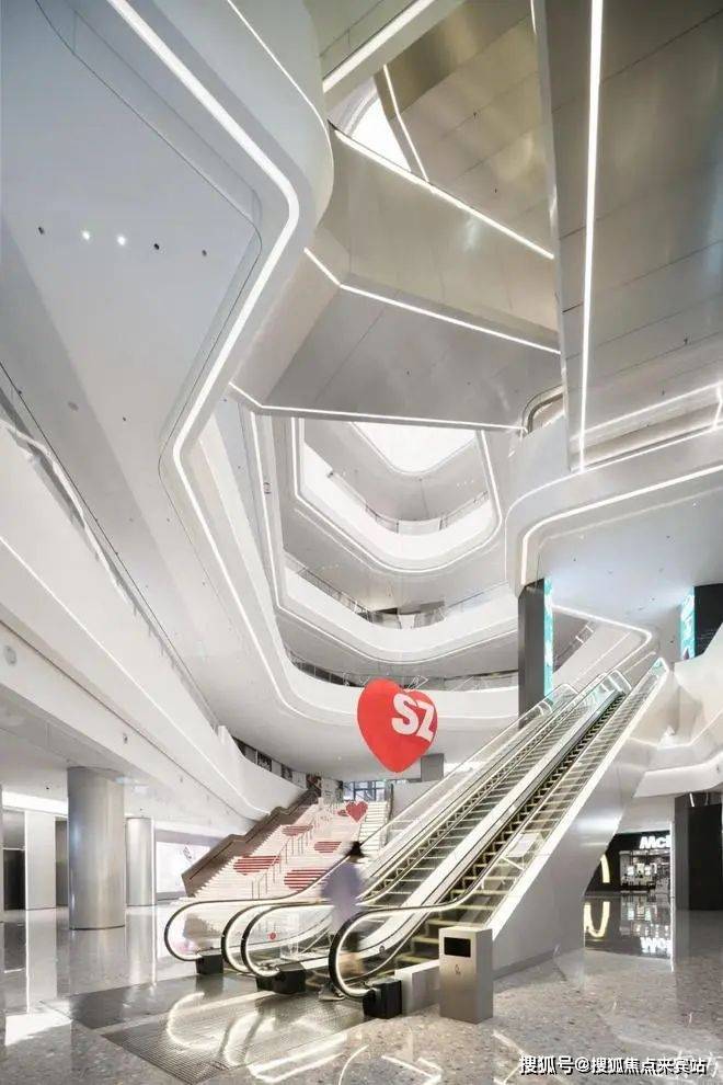 走进汉京中心的商业裙房,有一种被流动感环绕包围的感觉。随着视线上移,空间的形式在不断变化,巨大的中庭成为视觉焦点。