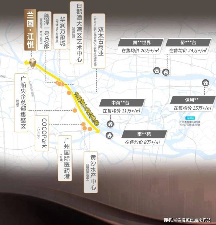 项目傲居白鹅潭CBD,便捷交通路网,500米地铁站。白鹅潭定位“广州西翼CBD”,对标纽约、芝加哥、东京等世界级中央商务区,以200万平方米体量晋升广州5大世界级商圈之首。