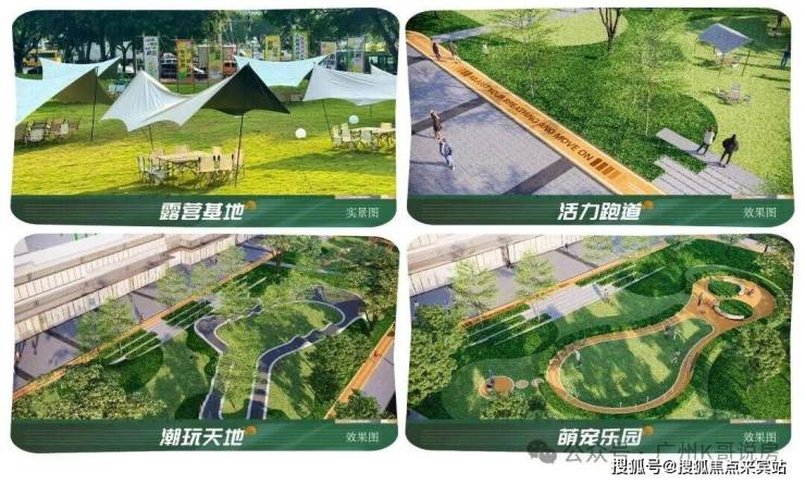 门口公园规划四大高定主题生活场,内部打造四大主题休闲空间,为你定制一半公园一半家,在家就像在度假。