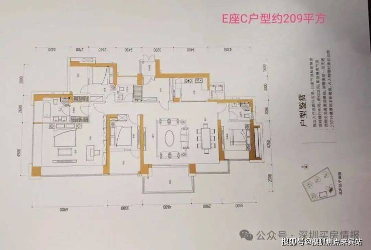E座:约209-211㎡4房3卫 南北通