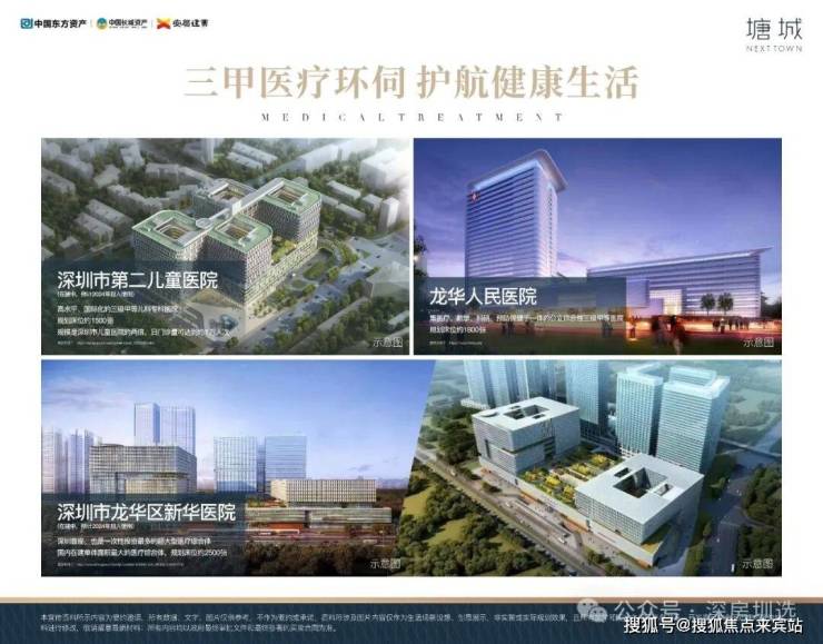 集萃深圳市新华医院(在建中)、龙华人民医院、深圳市第二儿童医院(在建中)、广州医科大附属医院(规划中)等市属公立三甲医院高标准医疗服务体系,护航健康生活。