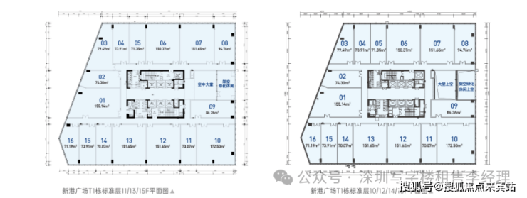 ·一层大堂层高11.9m,面积约555㎡(T1)