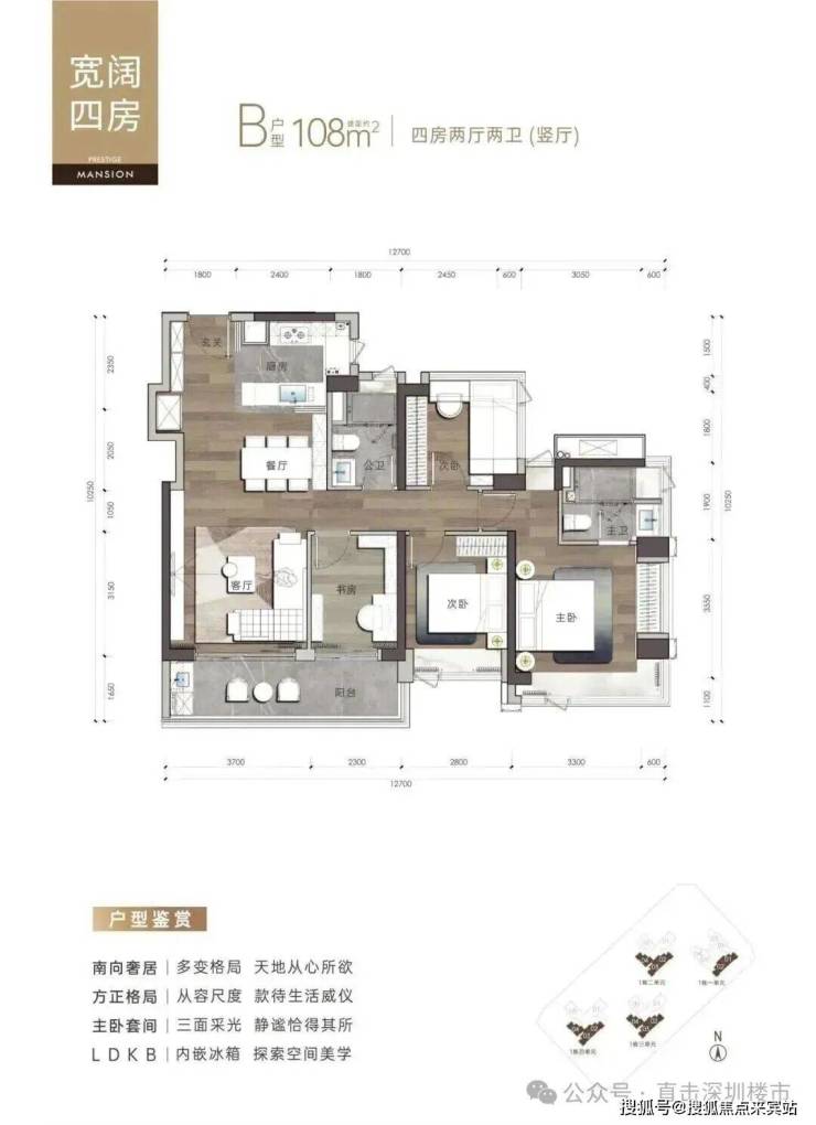 建面约109㎡的4房2厅2卫:大横厅设计,空间实用性更高,该户型使用率达到了98%。货量不多,稀缺性不言而喻。