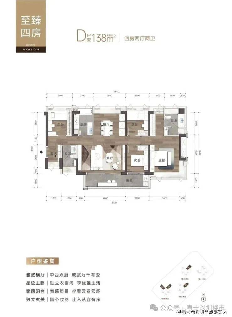 建面约138㎡的4房2厅2卫:一步到位户型,使用率达到97%,空间阔绰。货量也不多,不到30套。
