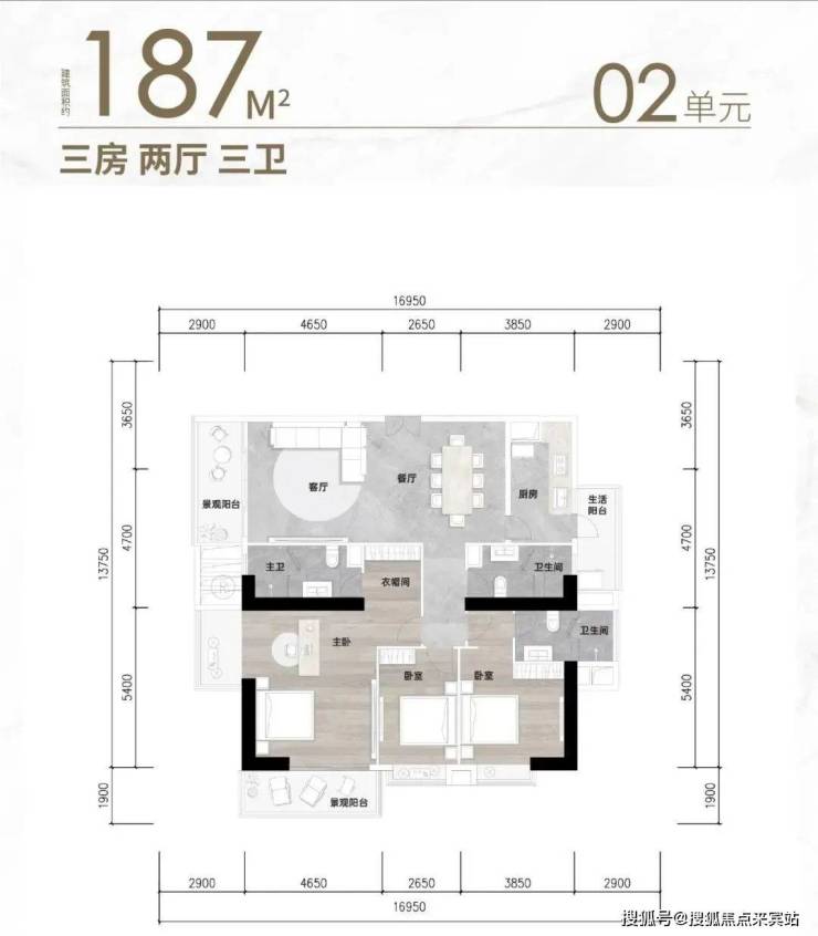 标准层面积:约620㎡ ,户型包括176㎡-187㎡-204㎡-257㎡三至四房