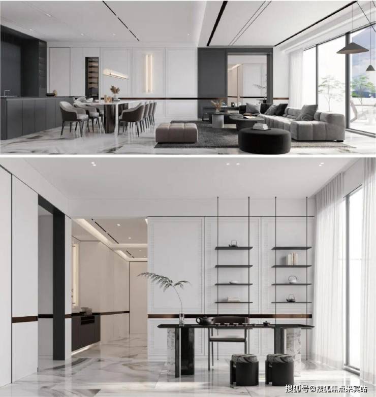 约55㎡大师级阔绰餐厅,宴请宾客、老友相聚,畅谈天地趣事。奢阔气度在横厅流转,营造会客雅境。
