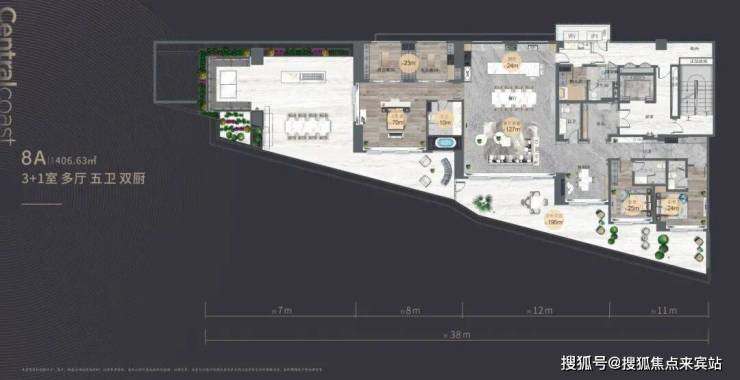 约37m横向观海面宽,大尺度环幕视野,户型方正、结构通透,值此尖峰人士的臻藏之选。