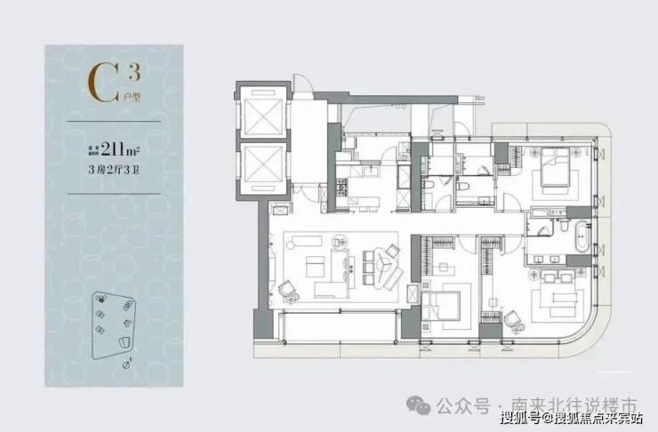 在产品打磨上,中信信悦湾堪称深圳顶豪市场的“代际差”作品。项目总占地面积约4.41万平方米,总建筑面积约31.63万平方米,一期规划5栋超高层住宅,仅407套纯大平层房源,容积率4.92,车位比高达1:2,由英国法雷尔建筑事务所操刀设计,以“东转南约8°”的巧思实现户户最佳瞰海角度-4-8-9。主力户型涵盖建面约211至658平方米的环幕海景大宅,全系采用3梯2户的专梯入户配置,层高达3.3-3.6米,配备270度景观阳台与巨幕全景落地玻璃。2026年3月,项目加推3、4单元共约200余套211-302㎡“小户型”,总价门槛降至3000万元起,其中211㎡四房为新增最小面积,302㎡热销户型同步返场,512㎡一层一户的旗舰产品后续亮相-1-3-8。在精装标准上,项目携手第一太平戴维斯提供英式白金管家服务,配置双会所、双泳池、约15000㎡中心花园及13米挑空下沉庭院,车库大堂配备酒店式环岛落客区与司机休息室,以顶奢细节定义湾区生活范式-8-10。
