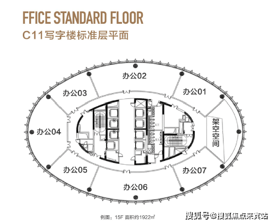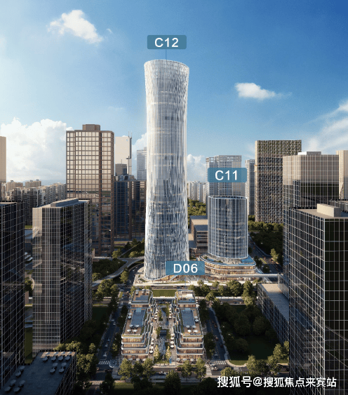C-11楼座,行业龙头专属办公区,建筑形体为直筒椭圆形塔楼,立面形式与C-12总部大厦的立面璀璨呼应;C-11建筑楼高约99.6米,共19层,办公建筑面积约2.53万㎡,商业建筑面积约1.1万㎡,为商务企业首选的机遇平台。