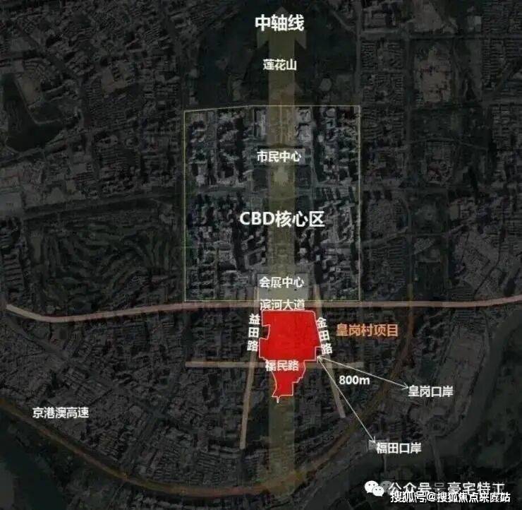 皇岗村改造项目,位于福田福民路与皇岗二街交汇处西北角,紧邻深圳地铁7号线皇岗村站,地处深圳中心的核心腹地。