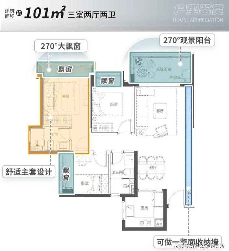 客厅可以打造超长的收纳空间,打造成创意安放孩子各种各样的兴趣爱好。270°观景阳台、主卧270°飘窗设计,通通是标配,居家也能极限舒展视野。