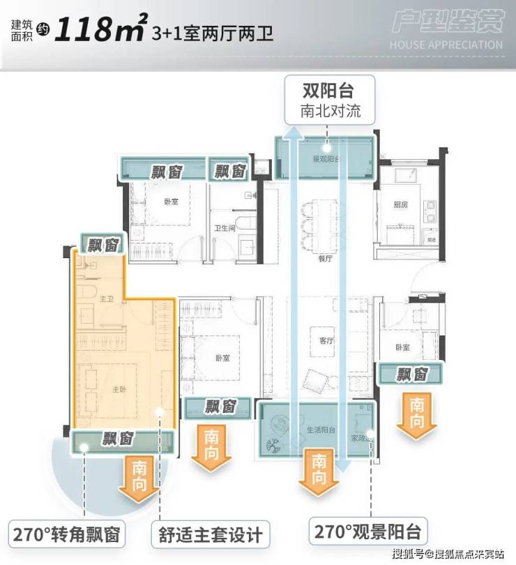 做到了四开间朝南,南北对流双阳台。加一点预算,二胎家庭便能一步到位。