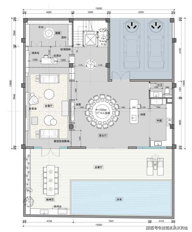 约 173㎡的空间里,布局 5 房 4 厅 7 卫、2 保姆房、2 车位与庭院泳池,使用面积在 920m² - 1410m²。一层客厅与餐厅畅连庭院,泳池景观尽收眼底,长辈房与客卫贴心设计;