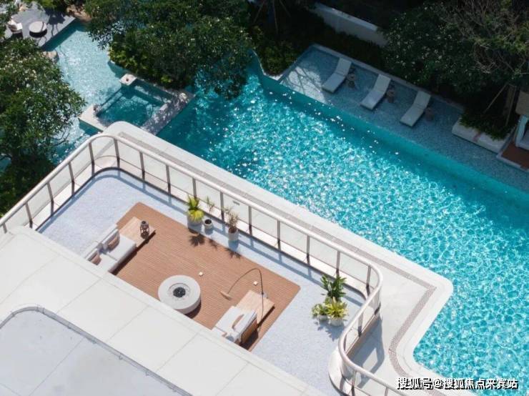 秉承热带隐奢酒店泳池场景美学,泳池旁绿意掩映,设置休闲廊亭、躺椅等,泳池内规划亲子按摩池、家庭泳池等分区,集聚、停、憩、赏为一体,享受避世的休闲和海岛休闲日常。