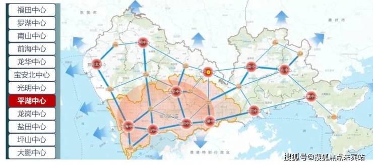平湖中心与福田中心、南山中心等共12个城市中心将延续深圳多中心、组团式的空间结构,形成“一核多心网络化”的城市开发新格局。