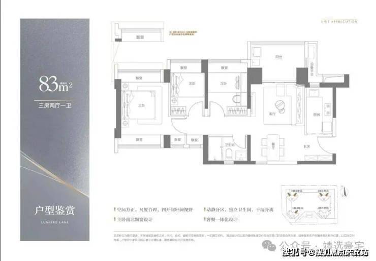 产品:建面约83-113㎡3-4房品智美学住宅,多面宽朝阳,揽清风入怀;