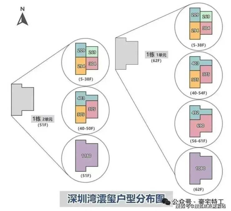 首推北区1栋、2栋,共约348套,分高低区设计:低区(5层起,150米内):约209-304㎡四房以上大户型。高区(42层起,150-200米):约370-403㎡ 4+1房五卫,带家庭厅及家政套间。超高区(58层起,200米以上):约500-700㎡顶级大平层。顶楼:约1050㎡整层大平层(仅3套)。