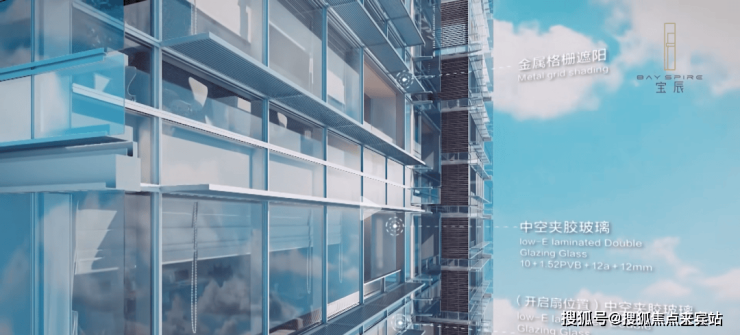 建筑的南北侧,在光洁的外立面层间位置,结合超白玻璃和铝板凹槽设计;西侧采用遮阳格栅设计,建筑的肌理感大为丰富。