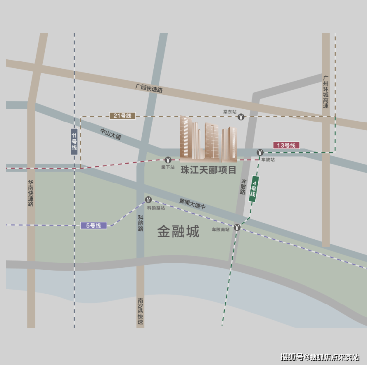项目私家连廊直通地铁13号线二期棠下站(预计2023年底通车,地铁联通口已预留,最终以政府部门规划为标准),10分钟抵达金融城交通枢纽,并以3+4+5超级交通枢纽,构建1小时湾区资本圈!