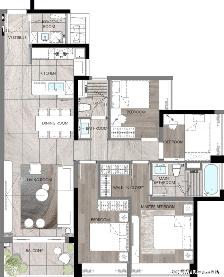 建面约140m² | 四室两厅两卫(横向)