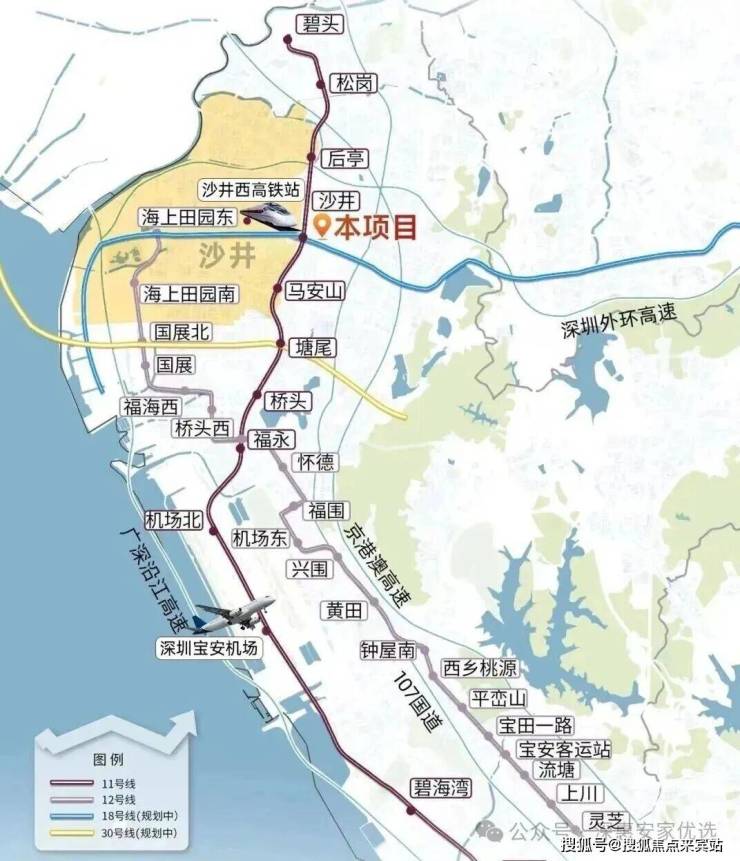 交通配套:锦和玉鸣府交通便捷,近地铁 11 号线沙井站(步行 7 分钟),2 站转 1 号线,8 站宝中、10 站前海、15 站南山高新园,运营 6:12-23:00,高峰 4 分钟 / 平峰 8 分钟;周边公交丰富,可换乘 12 号线。自驾享广深 / 外环高速等,5-10 分钟可达高速口;10 分钟车程至穗莞深城际沙井西站,未来 15 分钟通前海,衔接广莞。近规划地铁 18/20 号线,深中通道建成后纳入大湾区 1 小时经济圈。