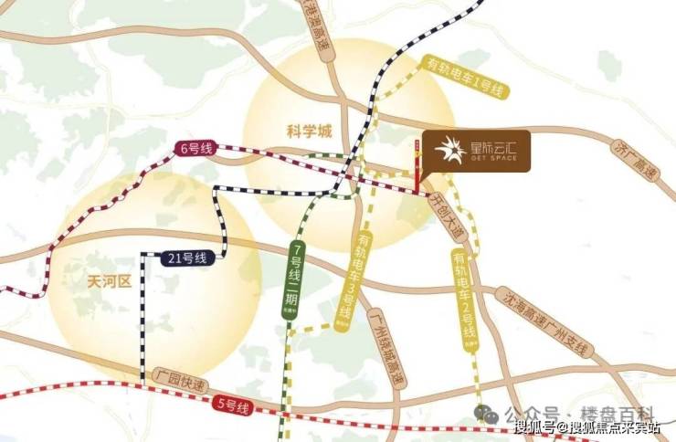 地铁——地铁6号线香雪站上盖,连通地铁7号线、21号线,速达珠江新城;有轨电车1号线、2号线、3号线香雪站始末站靠近项目;