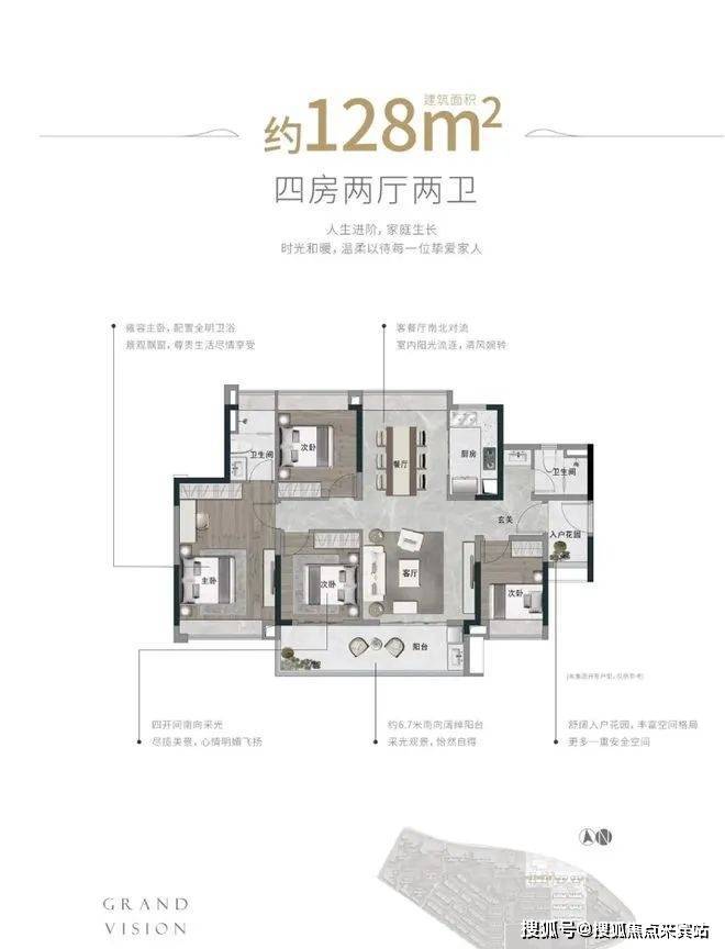 :户内格局方正,大开间搭配大景观阳台,空间户型可随家庭成长进行调整,如将书房改造成儿童房等,满足家庭不同阶段需求。全新升级 C 区组团交付标准升级,进一步提升居住舒适度。