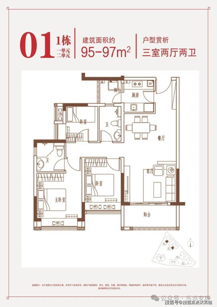 约95-97㎡三房:南向端头位,三面采光,花园瞰景