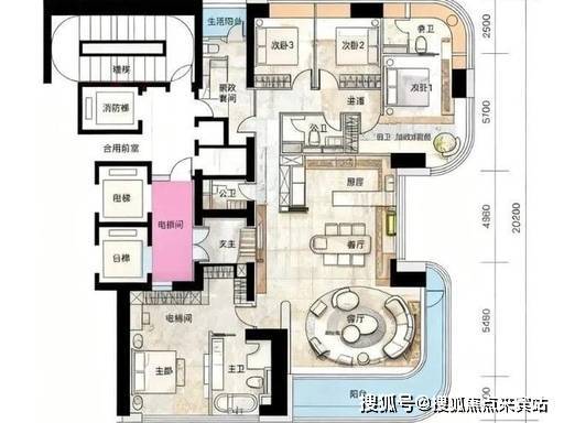 该户型为项目主力爆款户型,3.5 米极致层高,3 梯 2 户,首推即售罄。南北通透,全明格局,LDK 一体化设计,构建超大家庭核心区。270° 观景阳台,无遮挡海景 + 深圳歌剧院景观尽收眼底。双套房 + 家政间设计,多卧室朝南,尺度宜人,可轻松容纳三代同堂或多孩家庭需求。U 型明厨设计,操作动线流畅。双卫配置,干湿分离,主客分离。整体设计奢阔无浪费,完美满足高端改善家庭对顶奢生活的所有想象。