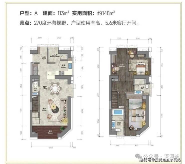 ★113㎡复式三房两厅三卫+工人房 南北通透三面景观,5.6米客厅与主卧开间,独具品位,尽享奢阔。