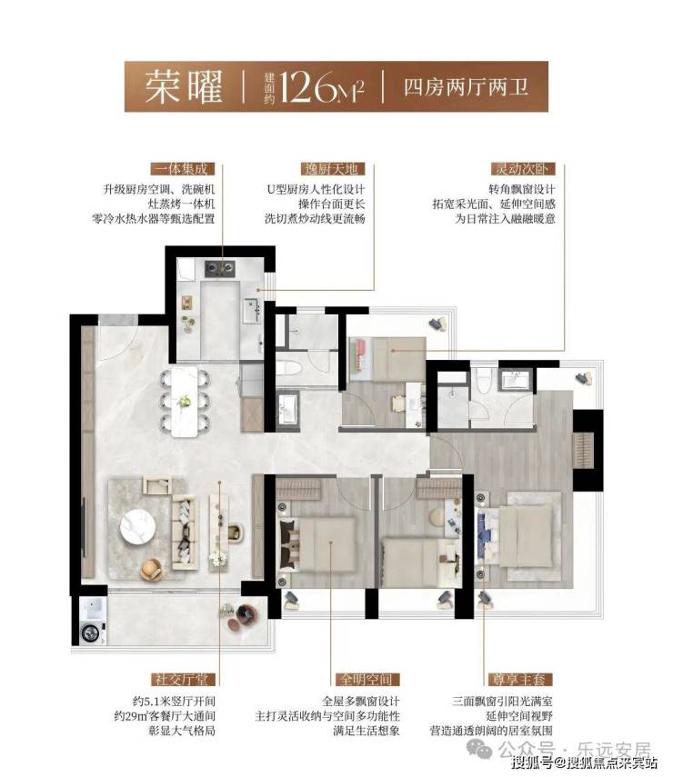 3. 新规高得房率约90%,户型实用,全南向布局,空间利用率领先同片区;
