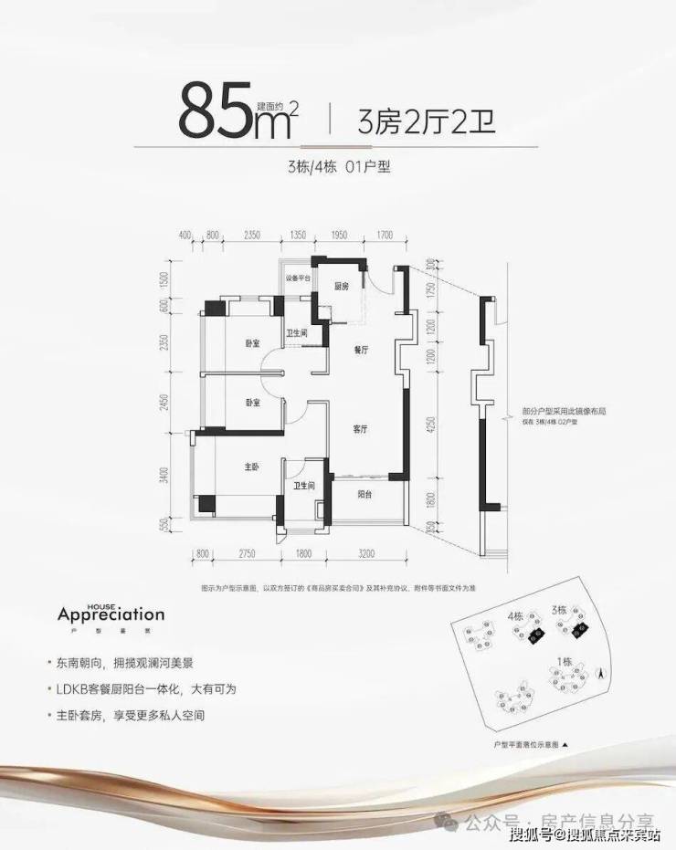 【户型面积】约75-85㎡3房2卫,约94-105㎡4房2卫