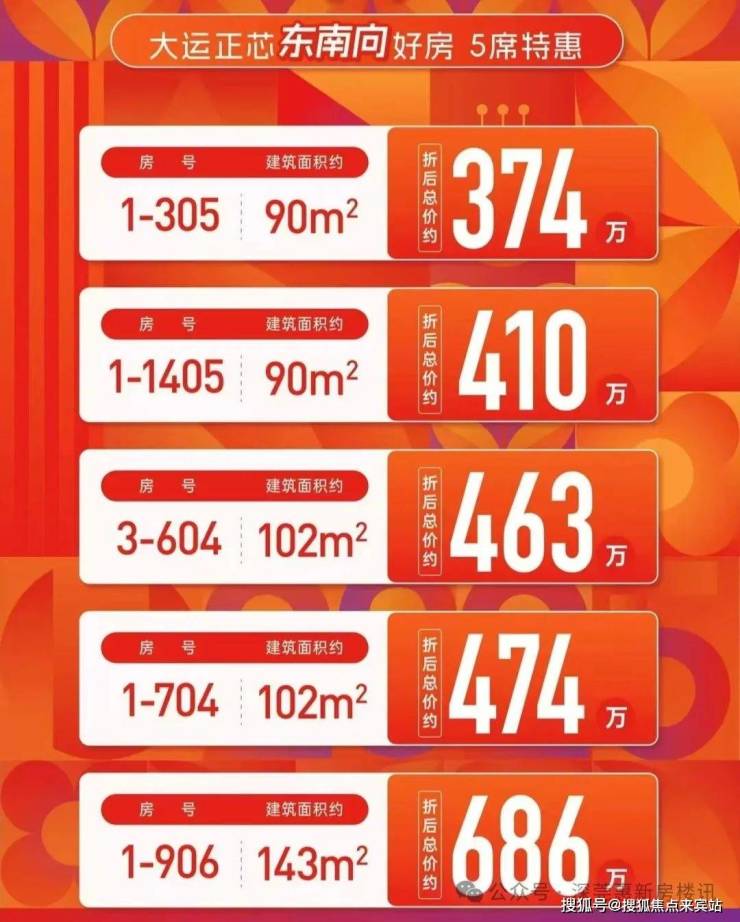 2、折后单价4.3万出头,对比周边次新小区价格有优势,总价373万起可以买到3房1.5卫,满足刚需上车需求。