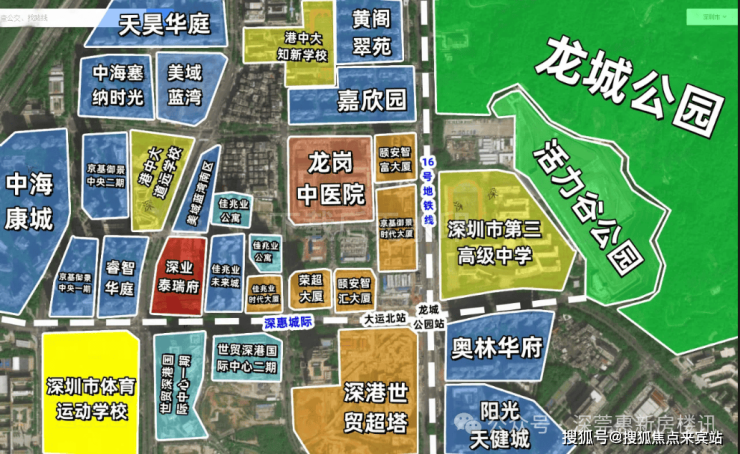 1、深业泰瑞府,地理位置还是不错的,毕竟属于大运中心,从罗sir所描述的画像图里面可以看出,周边已经基本没有住宅用地可以规划。
