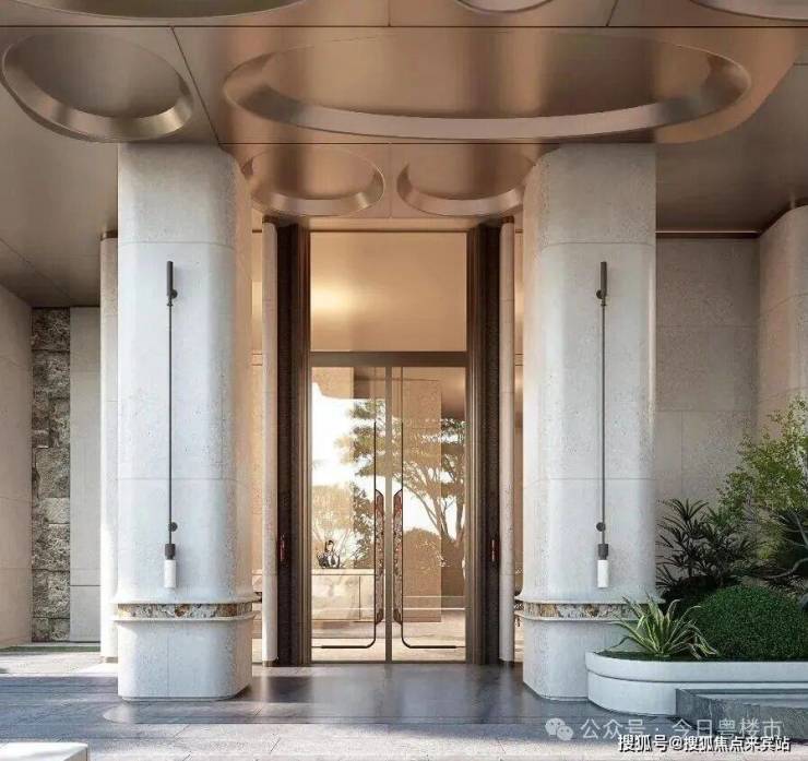 「后海招商玺」车行大门做了殿堂级落客区,设有天幕和水景,非常具备归家仪式感。