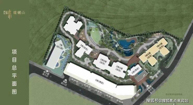 小区是往现代高端社区方向打造,步行大门是山林水石设计,而车行出入口则设计了酒店级回旋处落客区,跟「胤璞」很像。