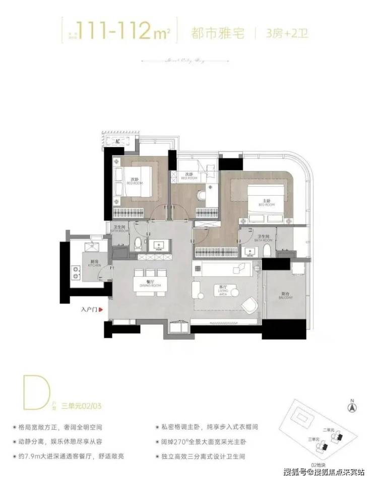 02地块共有四种户型,除了D户型是全新推出的,其余的A/B/C户型均在过去的03地块出现过。