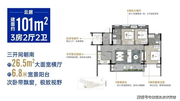 🔴【户型鉴赏】🔴🏠 云居 建面约101㎡户型 3房2厅2卫
