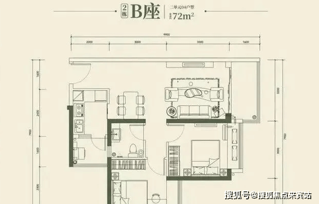 72-74平方米2房2厅1卫:适合年轻夫妇或单身贵族居住,空间布局合理,采光通风良好。