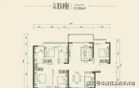 137-138平方米4房2厅2卫:适合大家庭或改善型需求客户,宽敞明亮,尊贵舒适。