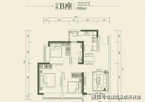 88平方米3房2厅2卫:适合三口之家或二孩家庭居住,功能性强,满足多种生活需求。