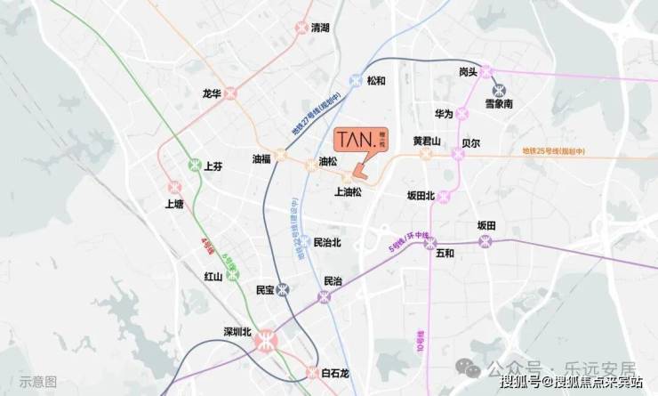 檀悦府交通便捷,邻近布龙路、五和大道、珠三角环线高速等干道;家门口在建 25 号地铁线 “上油松站”(2024 年动工,2028 年运营,一期地下敷设、时速 80 公里),2 公里内近深惠城际 “民治北站”,1.7 公里可达 10 号线 “坂田北站”。
