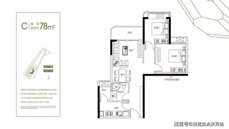 建筑面积约76-78㎡2房+1卫(灵活多变+1多功能空间)