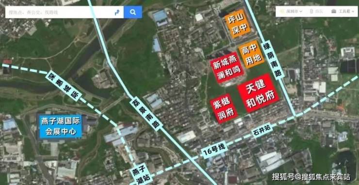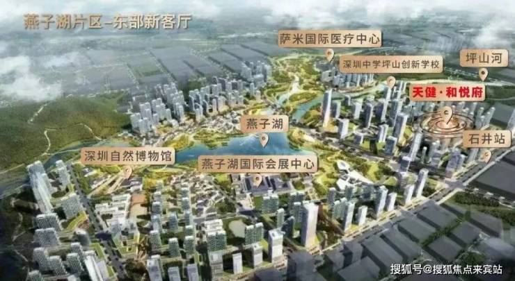 天健和悦府位于坪山区石井街道金田路与绿荫南路交汇处西北侧,项目地处燕子湖片区,西北部为燕子岭公园,坪山河自西向东贯穿而过2023年深圳两会提及加快建设9大区域,包括燕子湖新区,坪山十四五提出“1+7+N”重点片区格局,1为燕子湖,市级区级双重背书,高标准打造定位东部城市新客厅。
