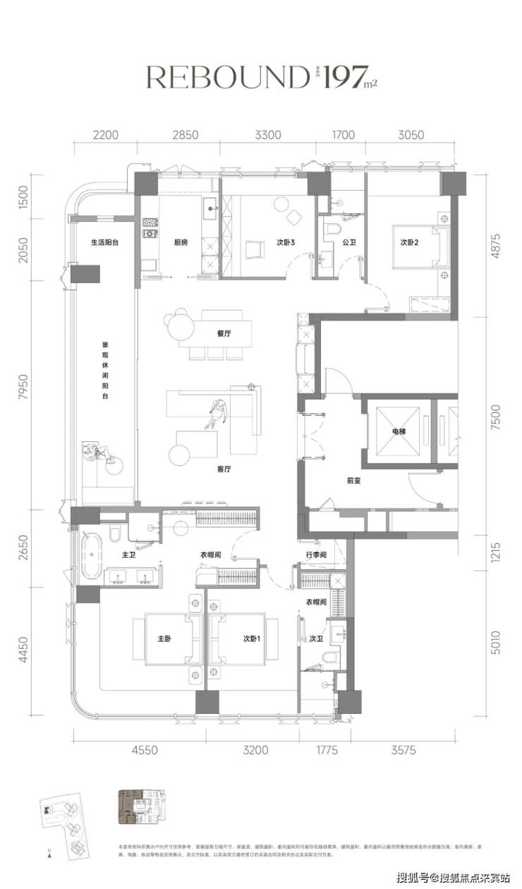 项目占地约1.5万㎡,总建面约15万㎡,由4栋住宅及1所幼儿园组成。商品房总计仅261户,户均面积约218㎡,主打约188-247㎡纯粹大平层社区。